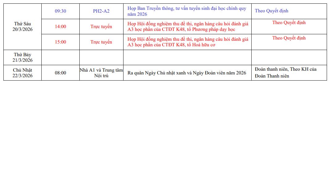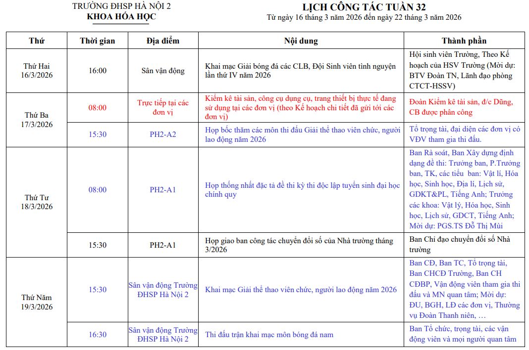 Lịch công tác tuần 26, năm học 2025 - 2026